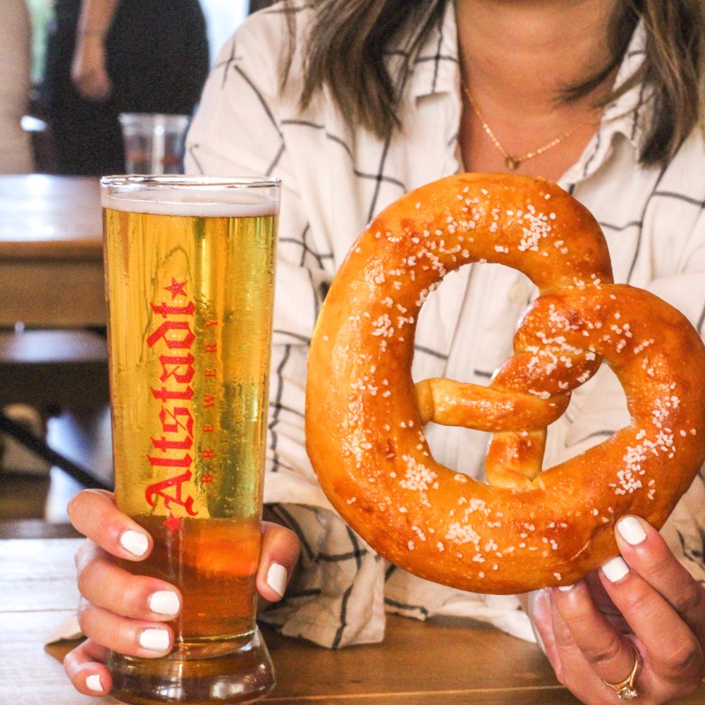 Our final stop of the best day we’ve all had in months was to Altstadt Brewery. Now I didn’t even know Fredericksburg had a brewery so this was super exciting! We got a behind the scenes tour of this massive property and oh my goodness is it incredible! So many private rooms for special events, the actual brewery, and a huge banquet hall! We got an authentic Oktoberfest vibe and shouted PROST many, many times while cheersing out oversized brews! We ate Bavarian Pretzels and couldn’t pass up their Altstadt Burger! There couldn’t have been a more perfect way to wrap up our weekend in this quaint German town!
