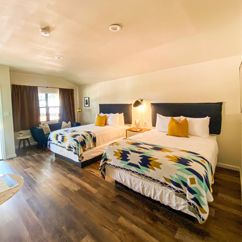 The other girls stayed in a cabin that was as equally as cute and rustic as the entire property! Two double beds, a vintage mini fridge, and parking at the door made this super convenient!