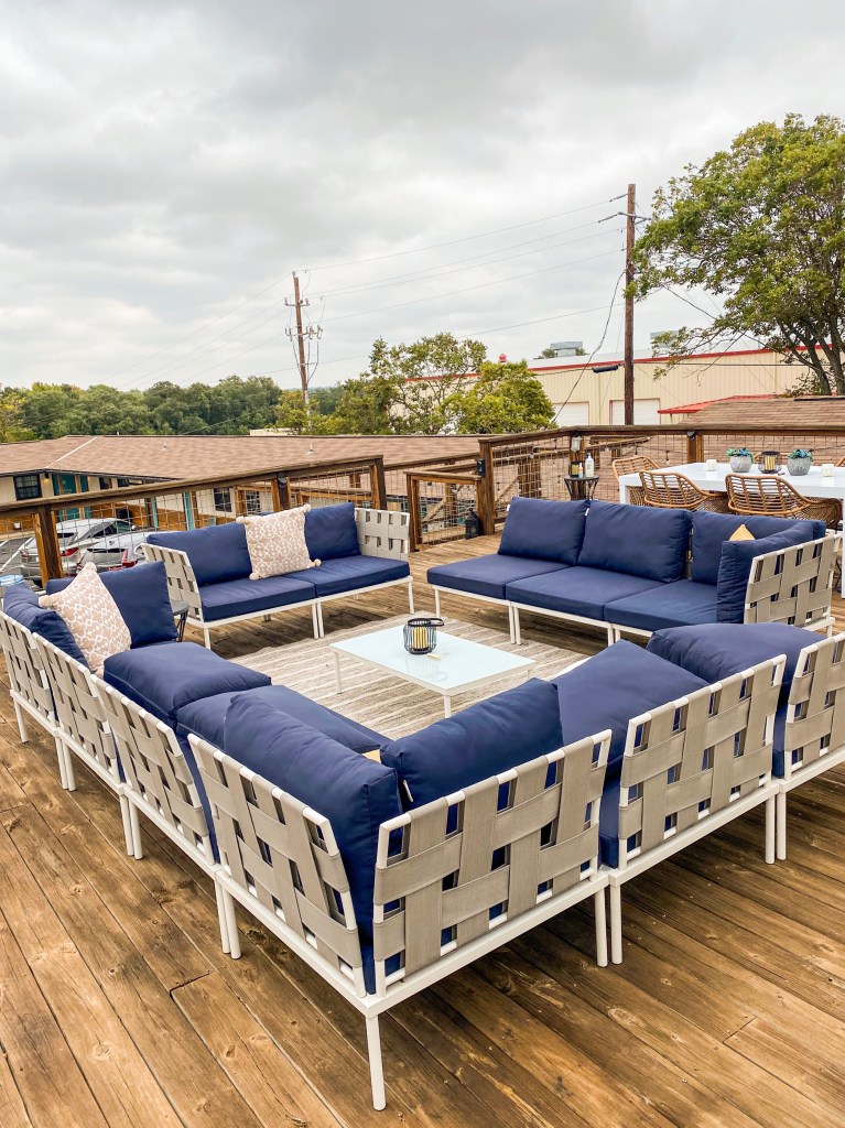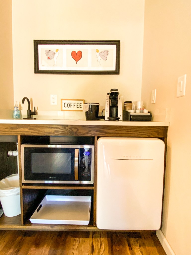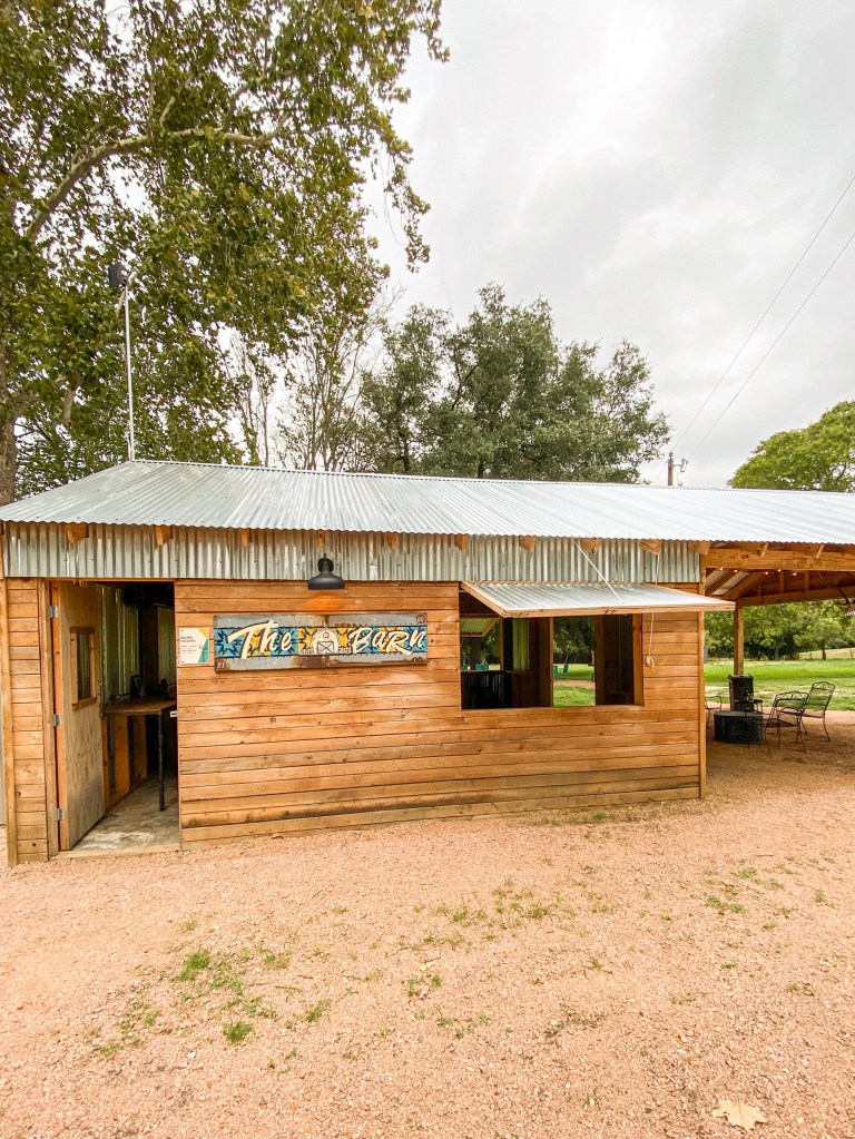 There’s also a rooftop deck that is perfect for stargazing (we actually were lucky enough to see a huge shooting star) and another outdoor communal area, The Barn with a tv and seating areas. Both spaces were sticked with hand sanitizer and bug spray which we all forgot to pack! The property is on over 3 acres so you really get the full small town experience here!