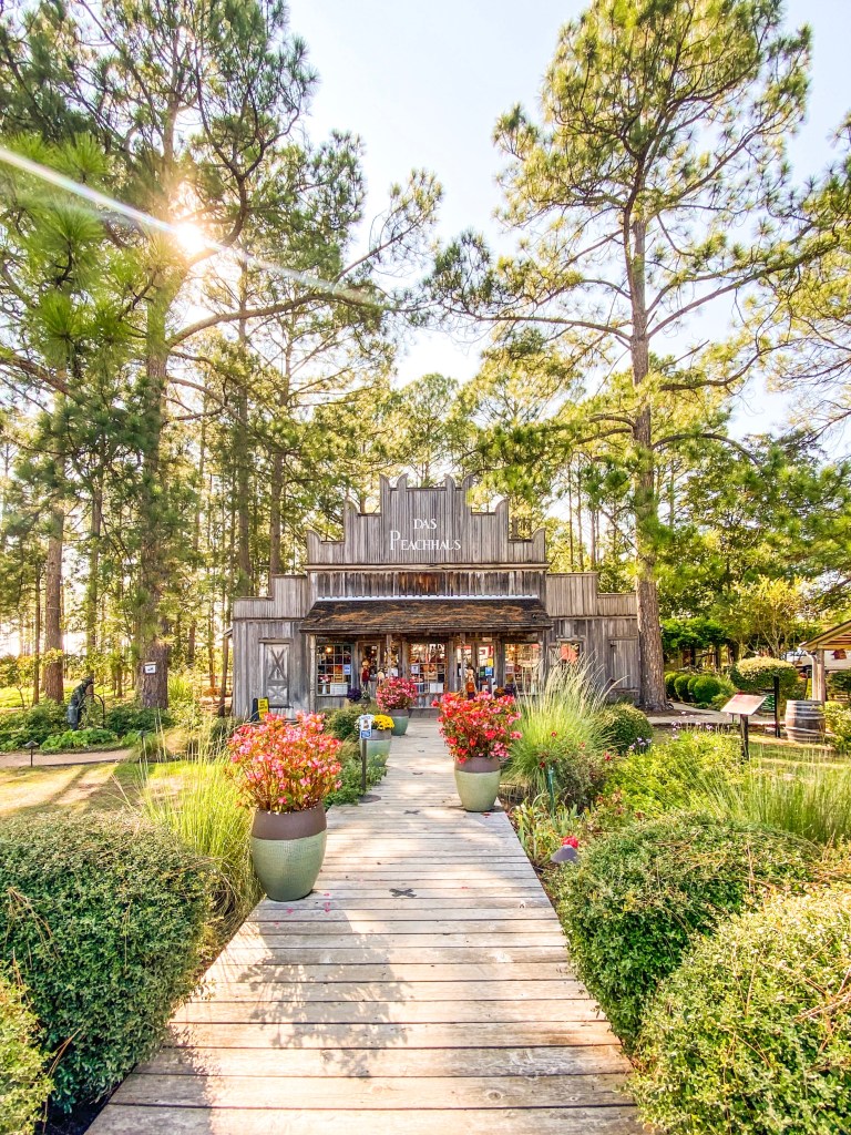 Then we were off to sip our first taste of wine at Das Peach Haus! I’ve heard a lot about this spot but never really understood what it was…I was thinking a bunch of peach trees in a field and it’s SO much more! A gorgeous indoor/outdoor space with a market, wine, and pure enjoyment all around! We tasted peach and light white wines while browsing for jams and sauces to bring back home then enjoyed the sunshine and scenery!
